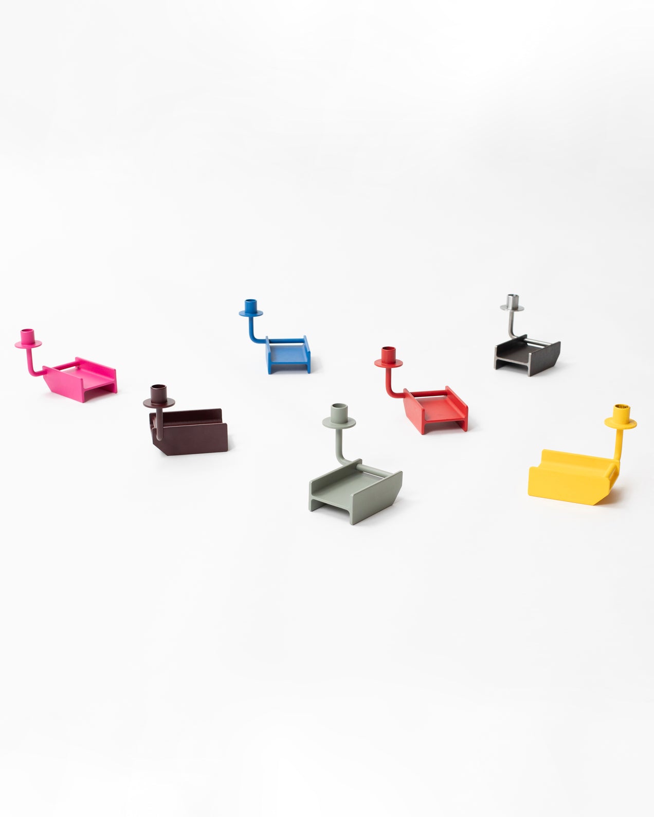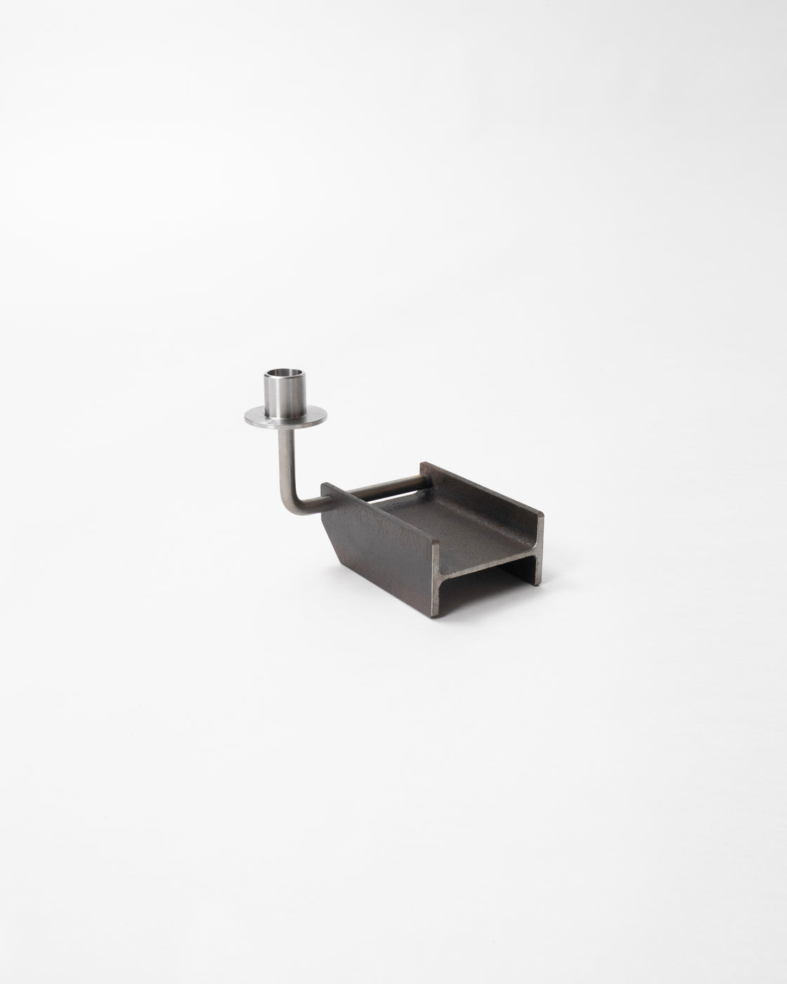 Simplicity and industry come together in this candlestick, made from a steel IPE profile. What starts as an everyday building material takes on new meaning in our workshop in Amsterdam: carefully assembled, finished by hand, and powder coated in color.