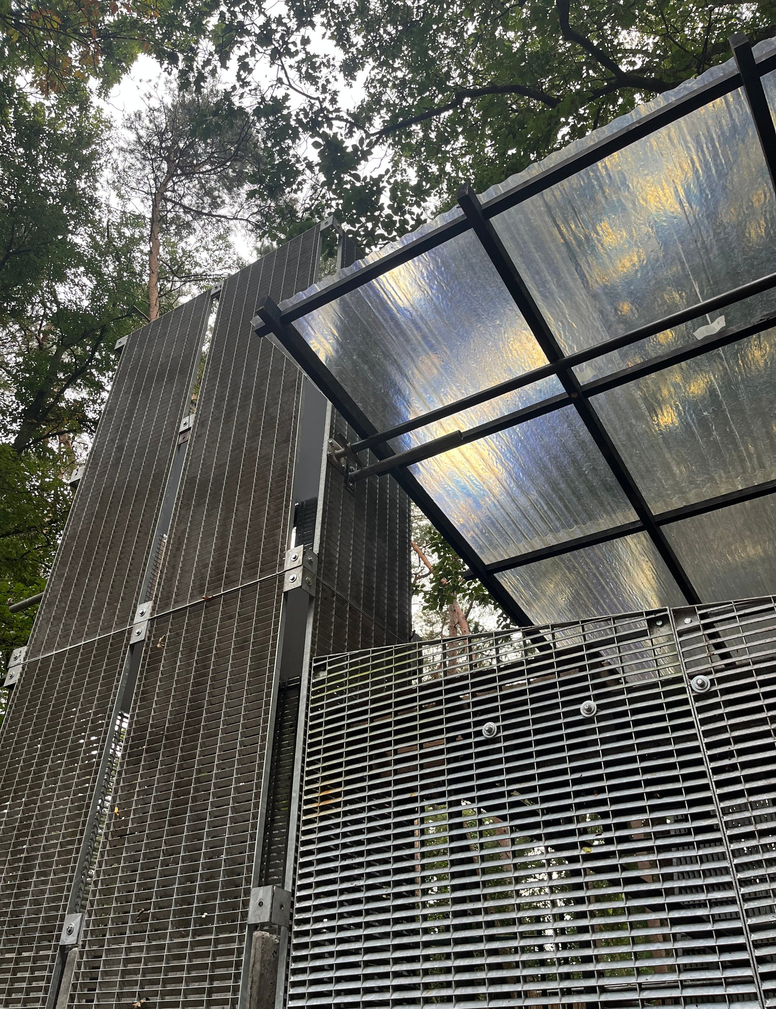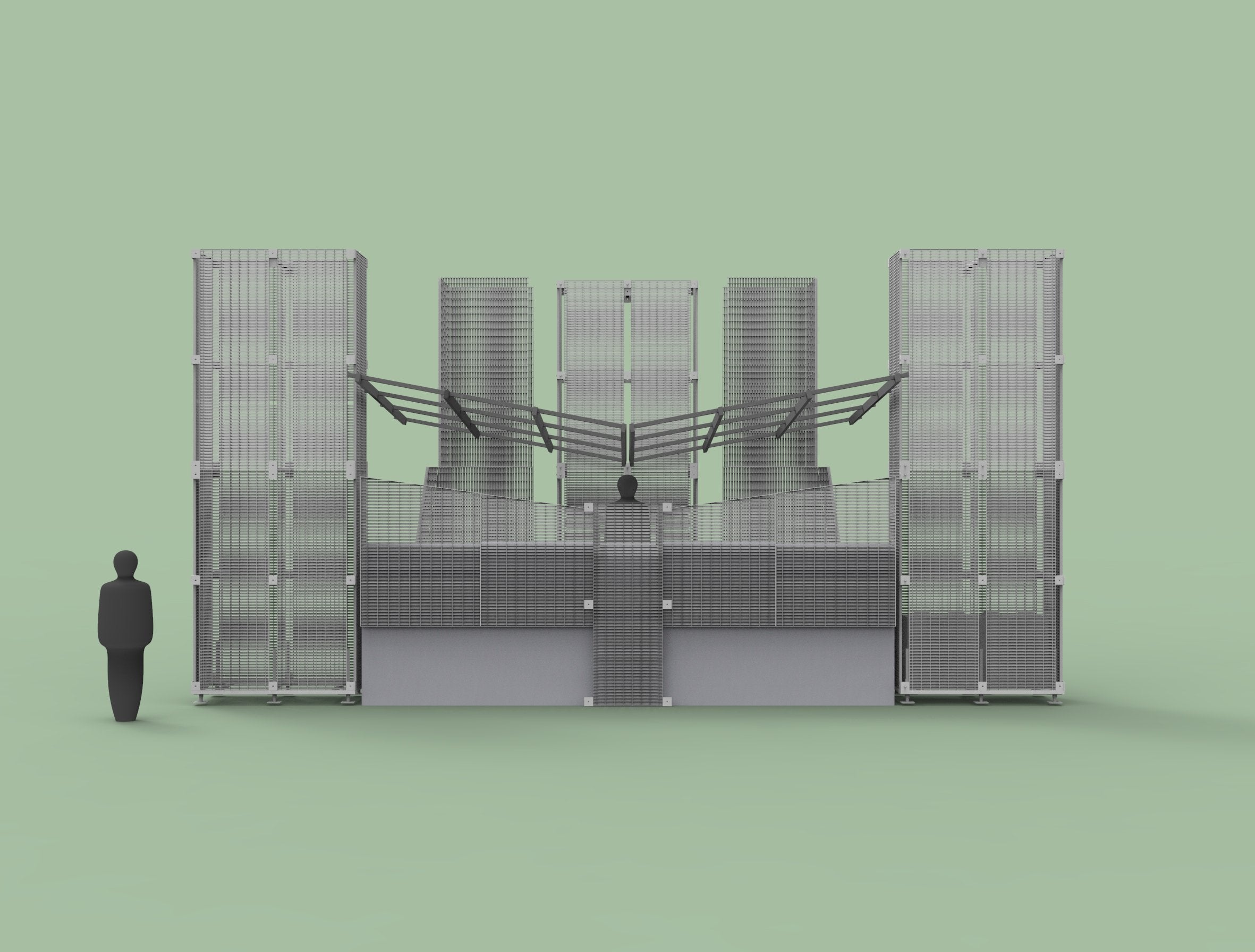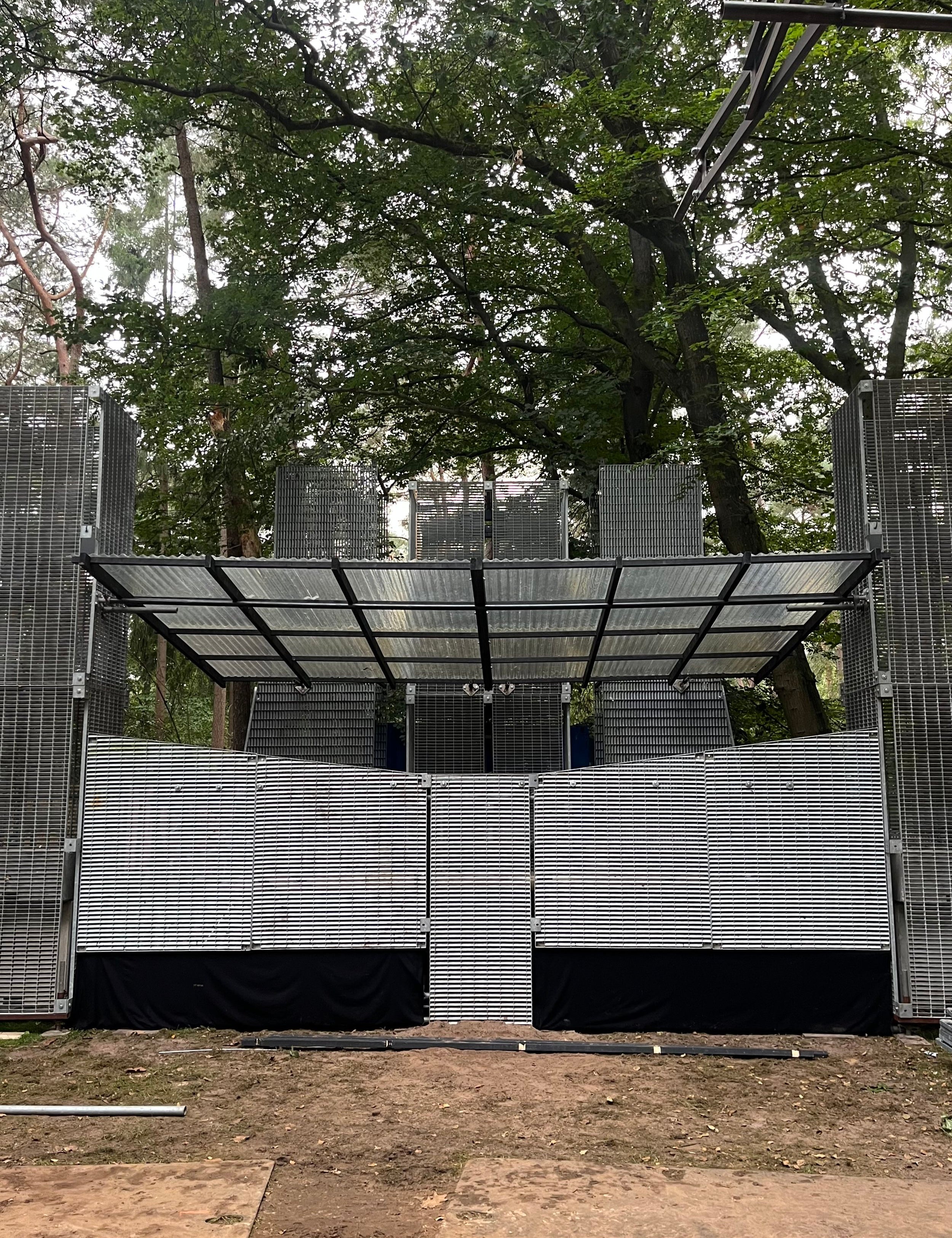 Believing in multiple uses for materials, we reused steel louvres previously employed at Wildeburg to build this DJ booth. The light show was produced by Dr. Strebel.