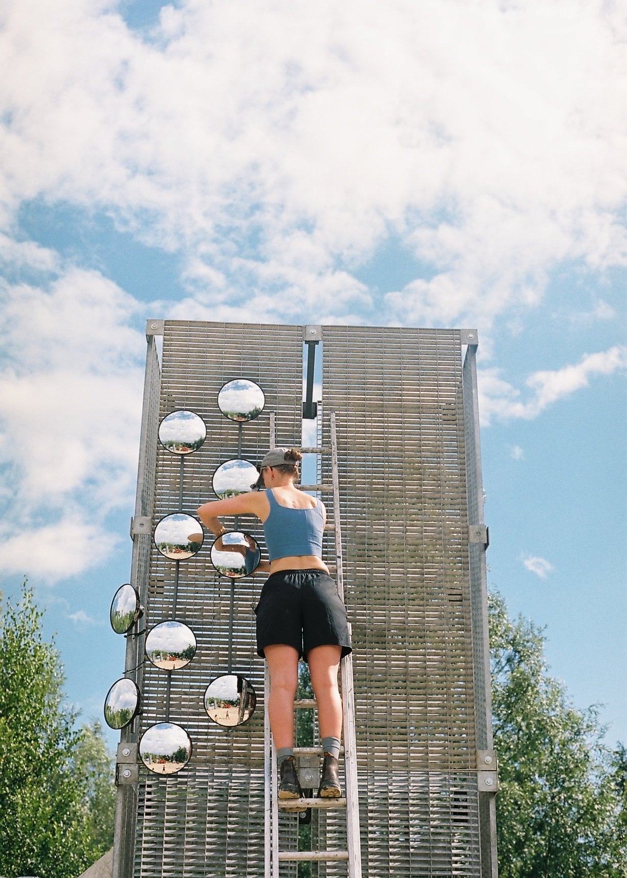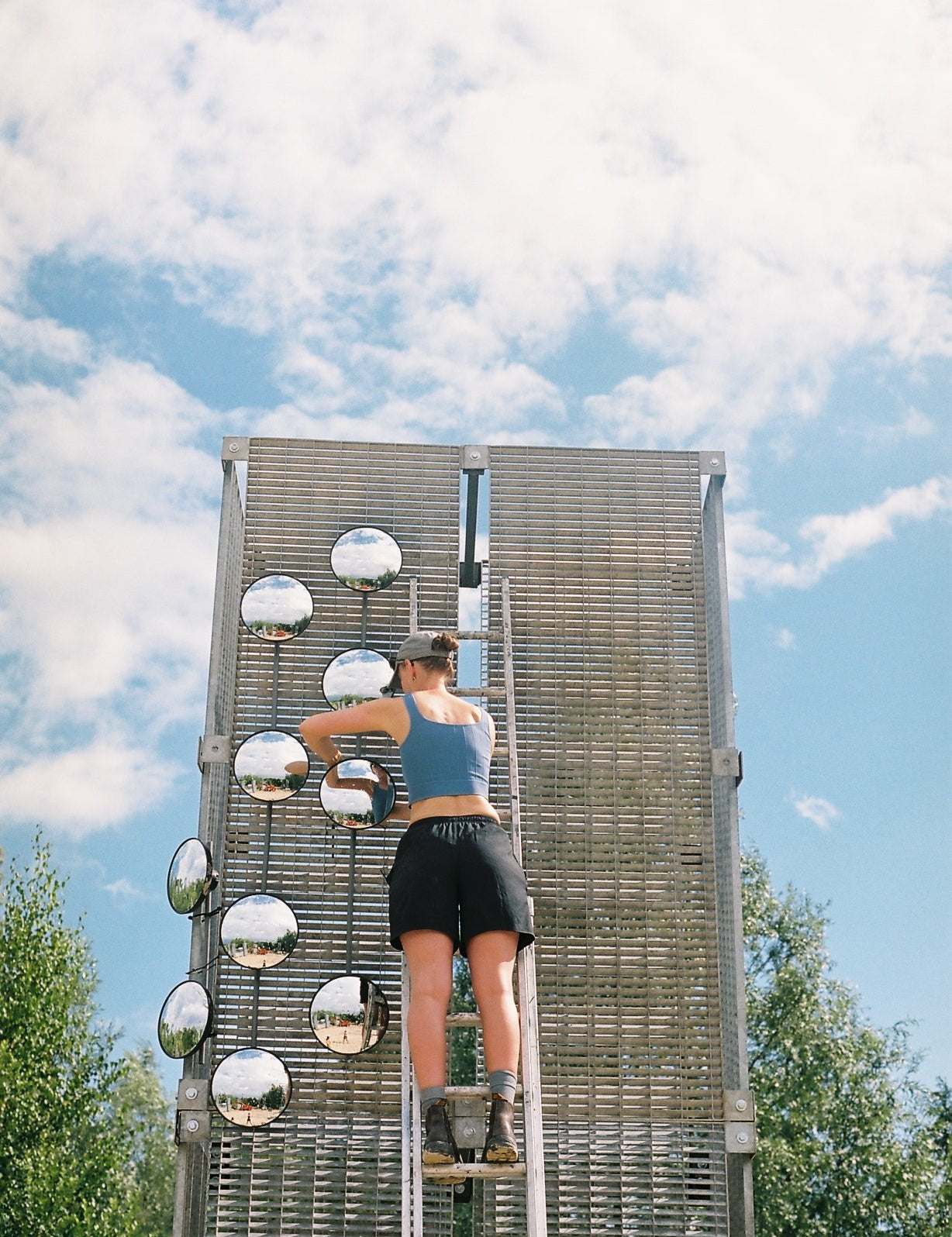 The mirrors came from surplus production by a traffic mirror manufacturer. Lumus handled the semi-truss circle and the iconic LED bar light show.