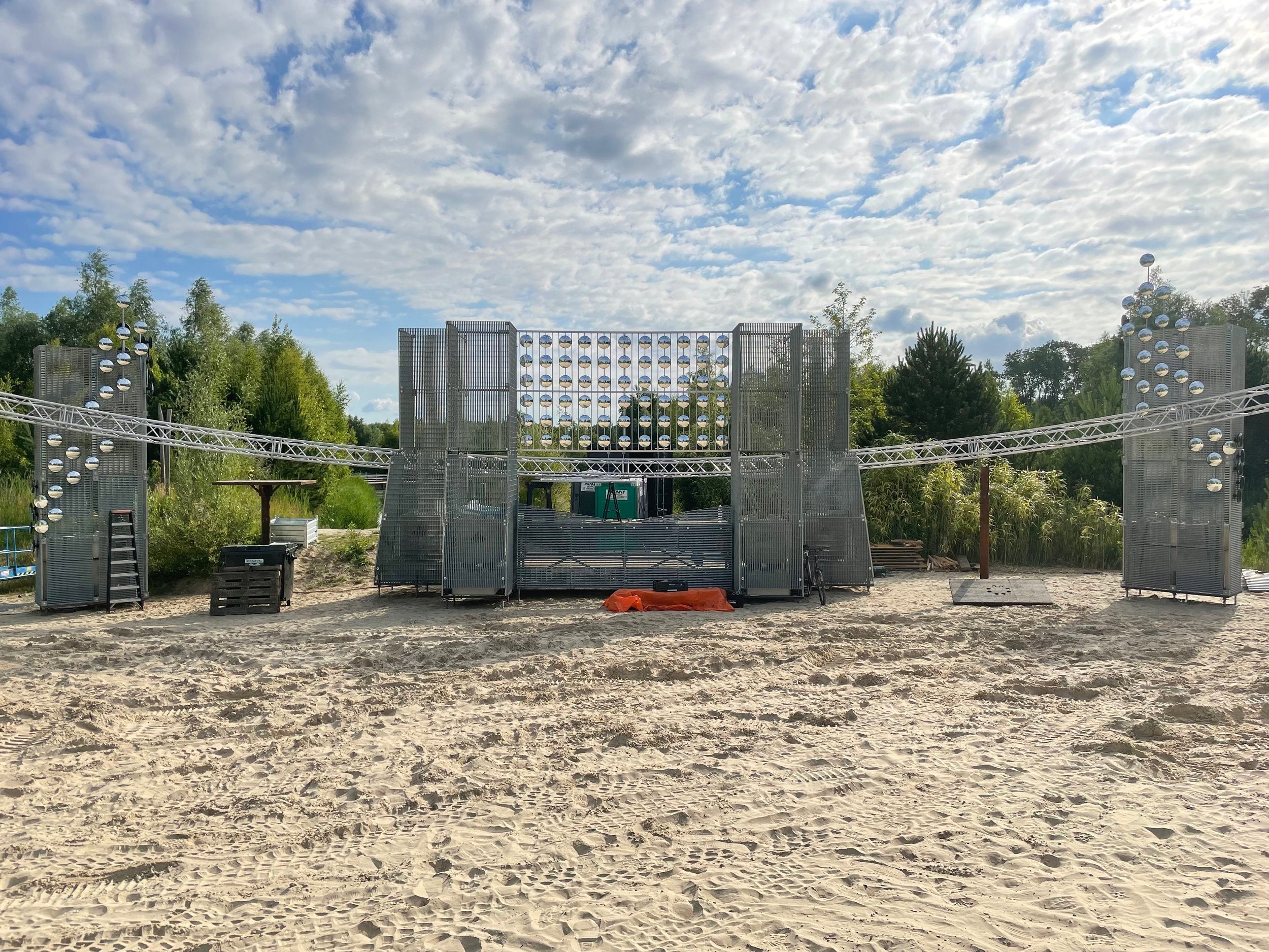 After the success of our project for Into the Woods during ADE, the organization asked us to decorate an area at Wildeburg. We sourced a batch of steel louvres, originally made for an offshore oil platform, which formed the basis for the towers and DJ booth.