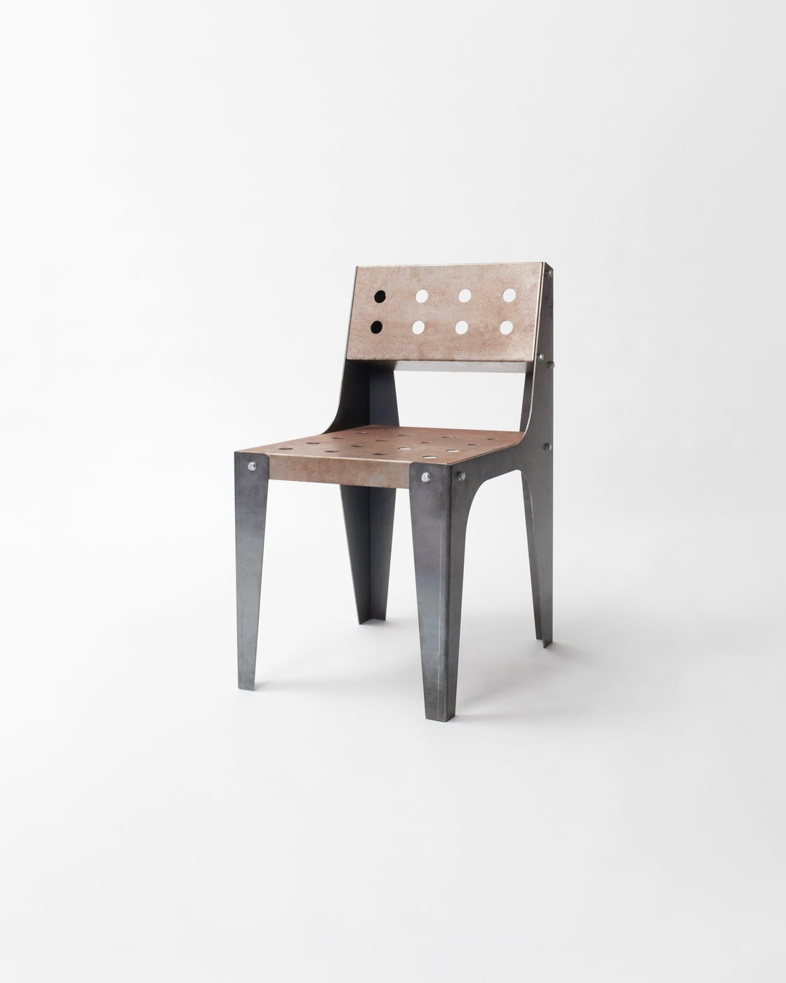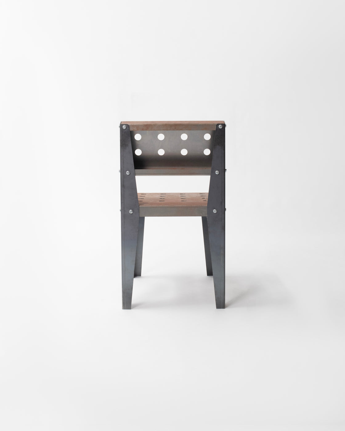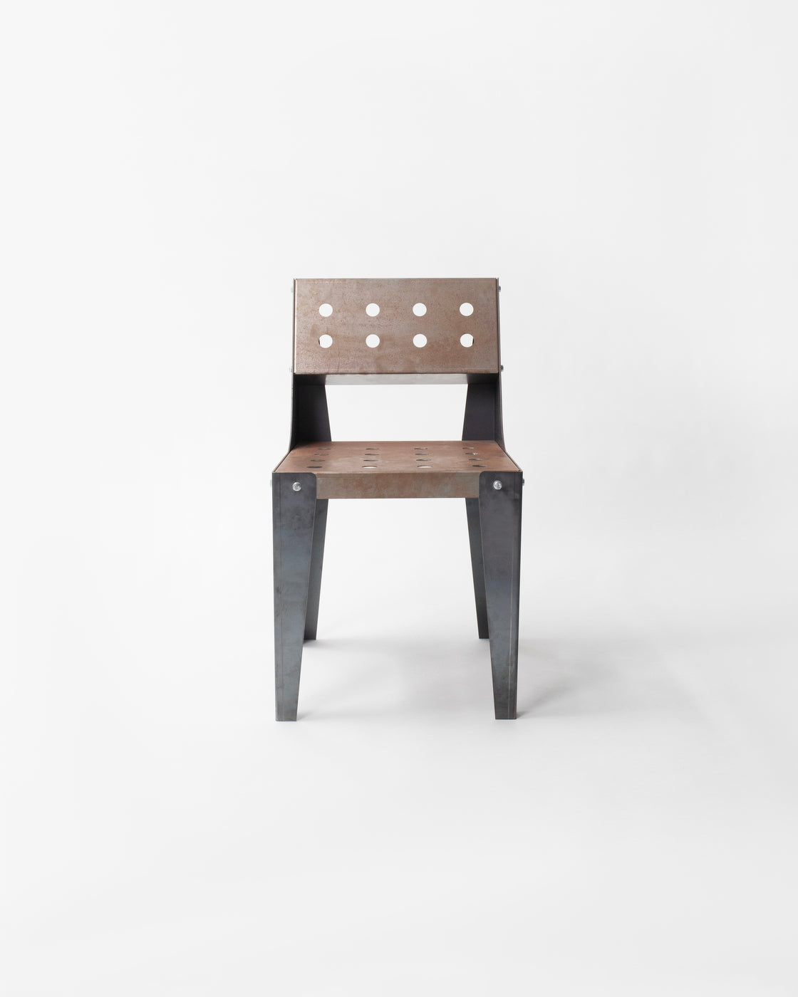 This chair is based on a foldable principle, with a nod to Jean Prouvé and designers who are both architects and makers. The light aluminum is geometrically folded into a constructive yet refined object: a chair that looks both industrial and timeless.