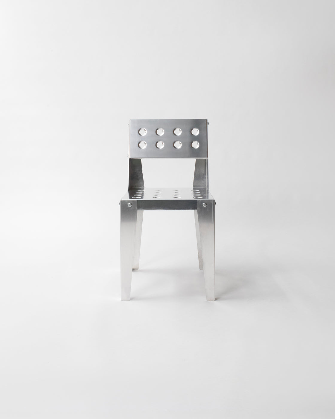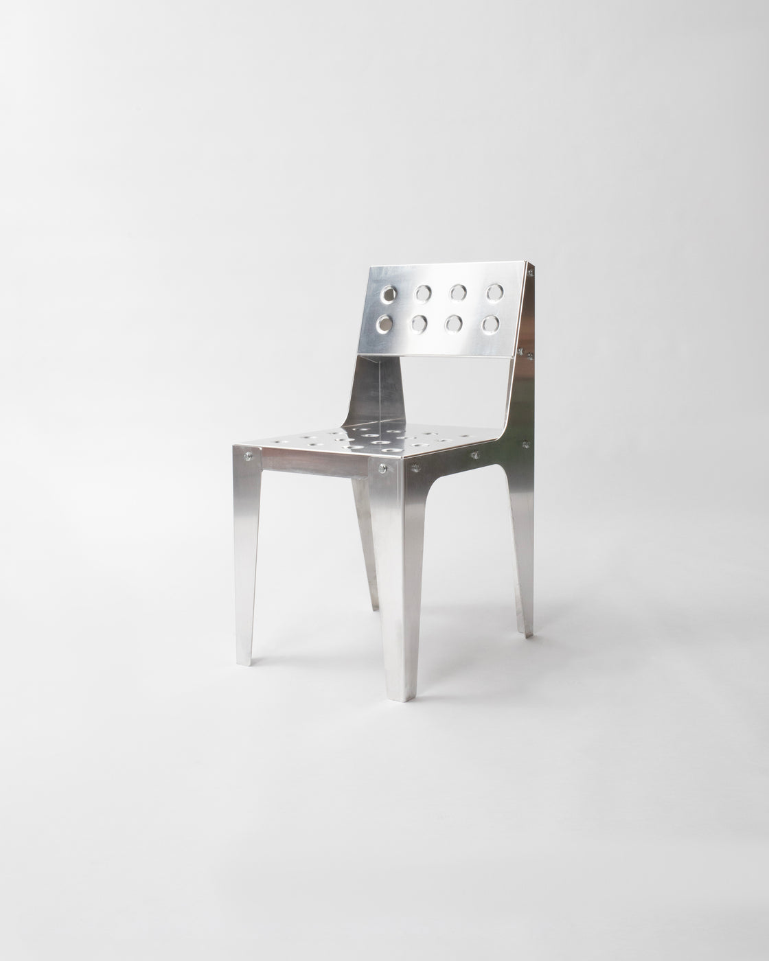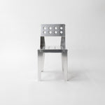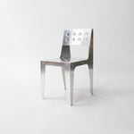 This chair is based on a foldable principle, with a nod to Jean Prouvé and designers who are both architects and makers. The light aluminum is geometrically folded into a constructive yet refined object: a chair that looks both industrial and timeless.